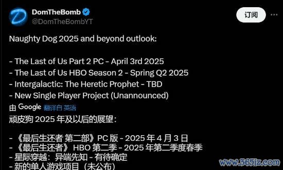 游戏博主DomTheBomb整理了顽皮狗2025年及以后的项目前瞻:大牛证券app下载安装